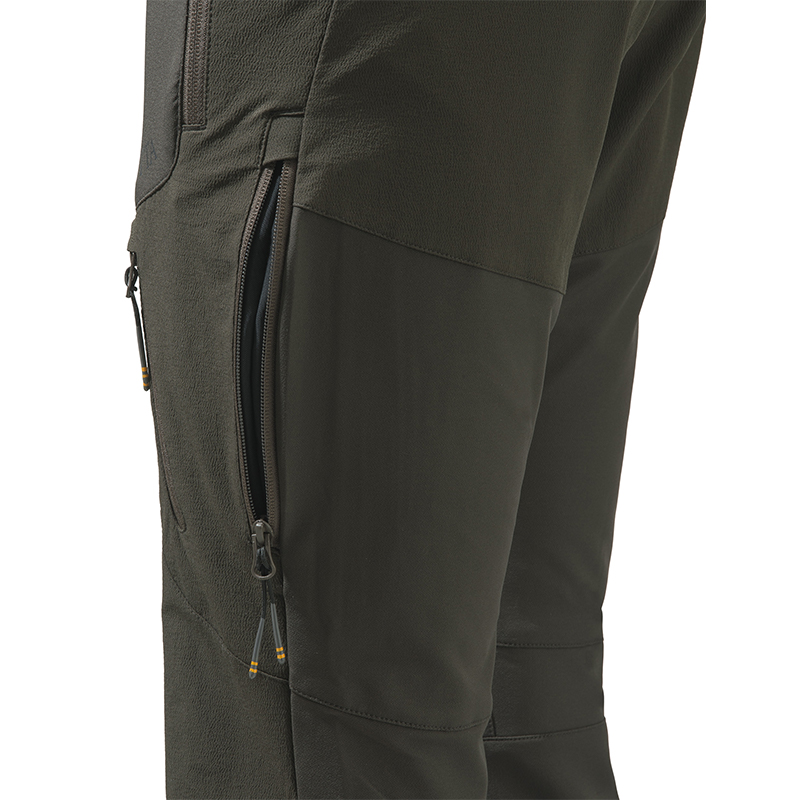 Hlavný materiál je 4-cestný streč s dobrou úrovňou odolnosti proti oderu. Vsadky z oderuvzdorných materiálov na kolenách a na chrbte zvyšujú odolnosť nohavíc. Pre väčšie pohodlie majú nohavice ergonomický pás s vysokou bedrovou opierkou. Elasticita, tichosť a priedušnosť sú kľúčové prvky, ktoré zaručujú maximálny výkon nohavíc.