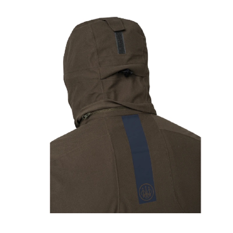 S membránou Beretta Waterproof Breathable (BWB) EVO. Odolné vůči chladu díky grafenové podšívce. Větrací zipy pod pažemi zabraňují přehřívání a zajišťují prodyšnost. Odnímatelná vesta z vysokoviditelného materiálu s certifikátem EN20471 v zadní kapse. Vnější materiál je ošetřen „Durable Water Repellent (DWR)“.