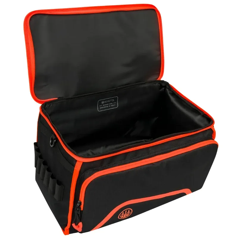Taška na náboje pojme až 10 krabic s 25 kazetami se 3 vnějšími kapsami na tlumivky, uzávěry a další příslušenství.