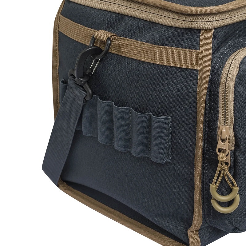 Taška na náboje pojme až 10 škatúľ s 25 kazetami s 3 vonkajšími vreckami na tlmivky, uzávery a ďalšie príslušenstvo.Vlastnosti :Miesto pre 10 škatúľ po 25 kazietVyrobené z odolného materiáluRemeň na nosenie2 vonkajšie vrecá na YKK zips27 x 44 x 25cm